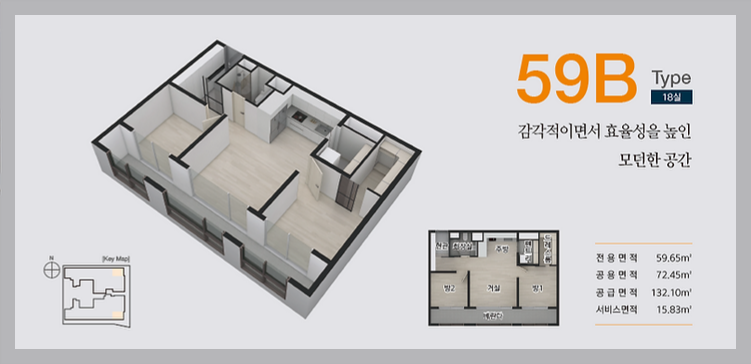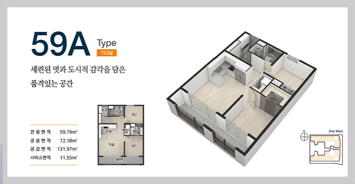 타입별 분양가를 보면, 59A타입은 5억 후반, 59B타입은 6억 초반, 44C타입은 4억대로 책정되어 있습니다. 청약 일정은 7월 26일(금)로 예정되어 있고, 청약 방식은 선착순 또는 초치기로 진행될 예정이라고 합니다. 계약금은 1,000만원이 필요하다고 하네요. 그 외에도 전국 청약이 가능하고, 청약통장이 필요 없으며, 전매제한도 없다고 하니 매력적인 조건이에요!